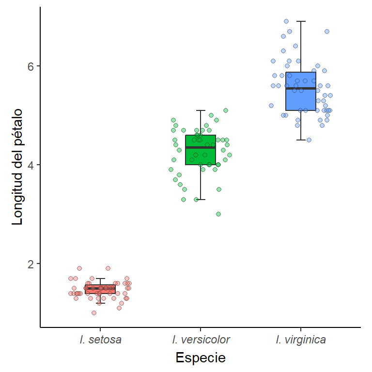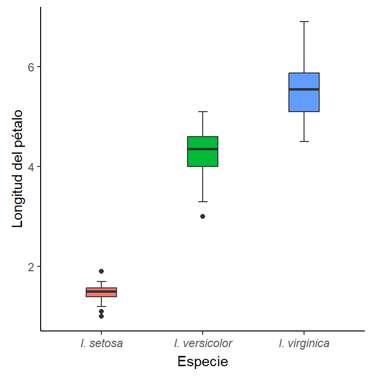 scale_x_discrete(name = "Especie", labels = c(expression(italic("I. setosa")),