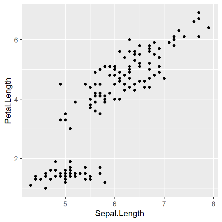 ggplot(data = iris, mapping = aes(x = Sepal.Length, y = Petal.Length)) +