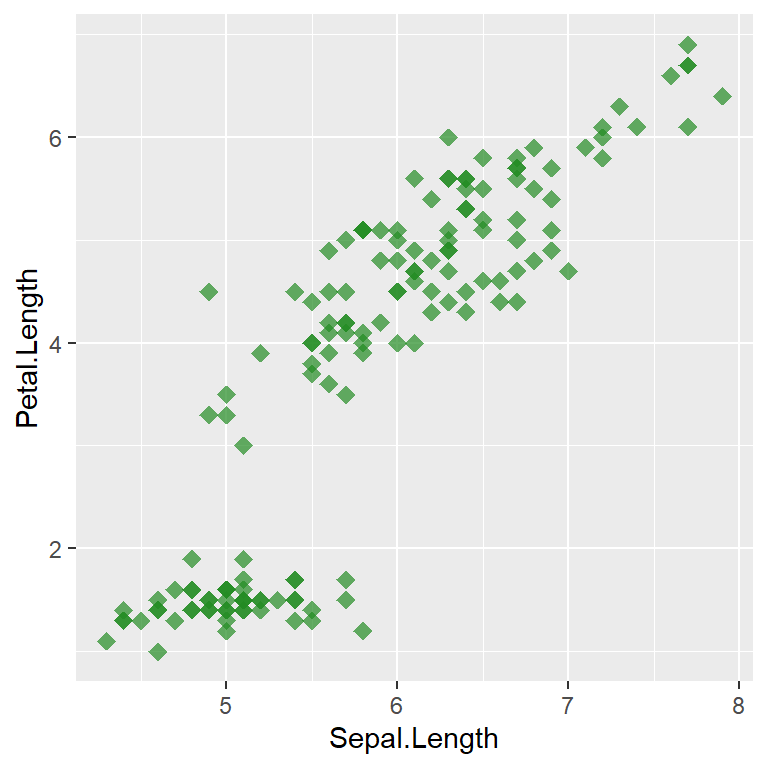 geom_point(color = "forestgreen", size = 3, shape = 18, alpha = 0.7)